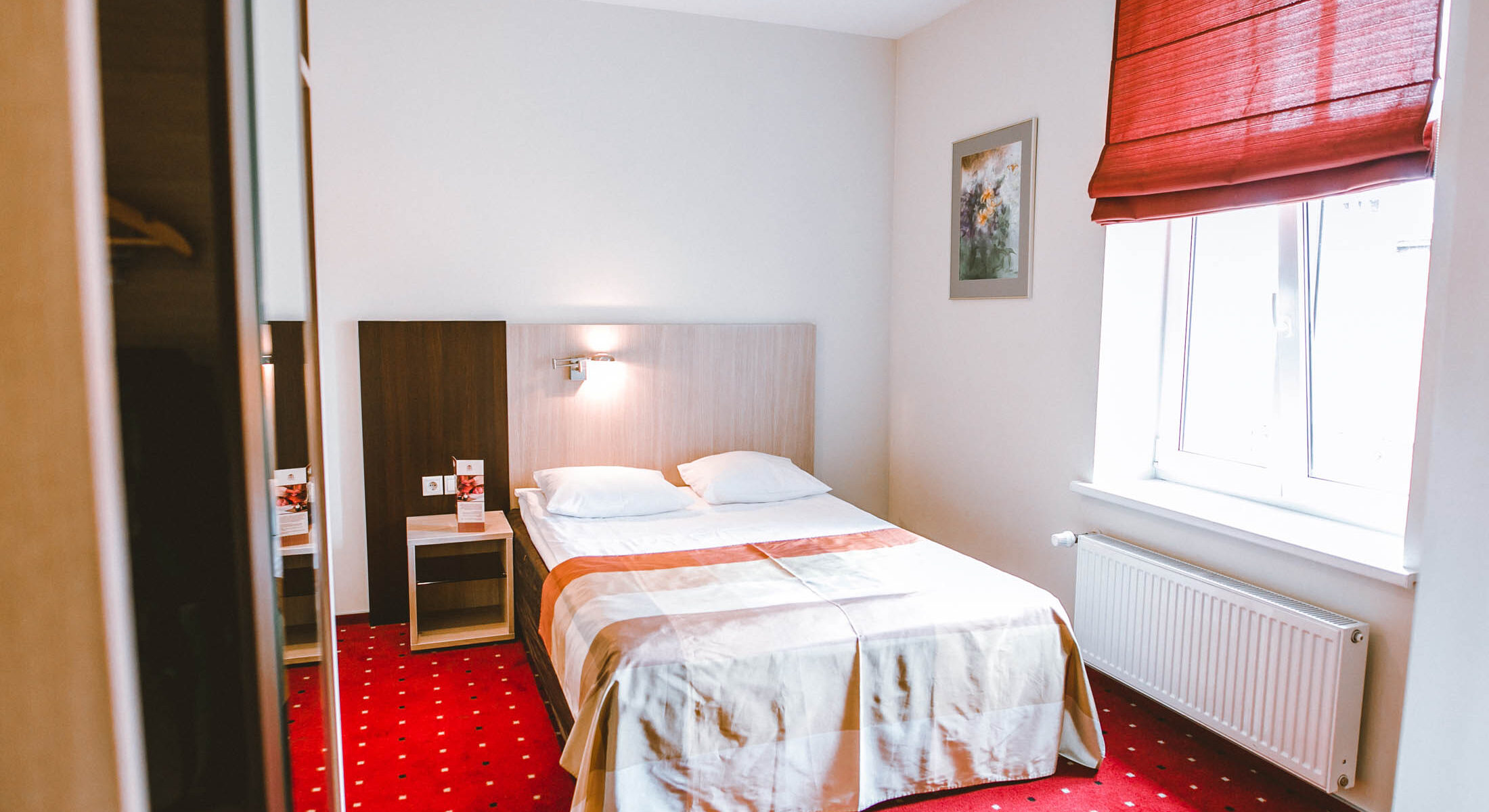 Our single rooms are designed for the solo traveler who appreciates a functional and quiet space. Each room features a generously sized 140 cm wide bed, offering more room to stretch out than a standard single. The atmosphere is simple and honest—a clean, private retreat where you can relax after a day of meetings or sightseeing. We focus on the essentials: a comfortable mattress, a practical layout, and a peaceful environment to ensure you get a great night’s sleep.